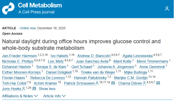 现代办公室恒定的低强度人工光,剥夺了我们接收这种关键环境信号的机会,可能导致生物钟与外界环境失同步,进而可能损害代谢健康。这项研究证实,恢复自然光暴露,能够有效改善这一状况。